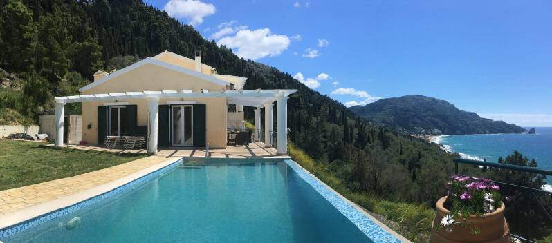 Ortholithi house is nieuwgebouwd rond 2010 als vakantiehuis van Nederlandse eigenaars. Het is gelegen op de dichtbegroeide hellingen van de baai van Agios Gordis , het is vrijstaand met veel privacy, door de beschutte ligging heerst een gunstig microklimaat met gelijkmatige temperaturen.